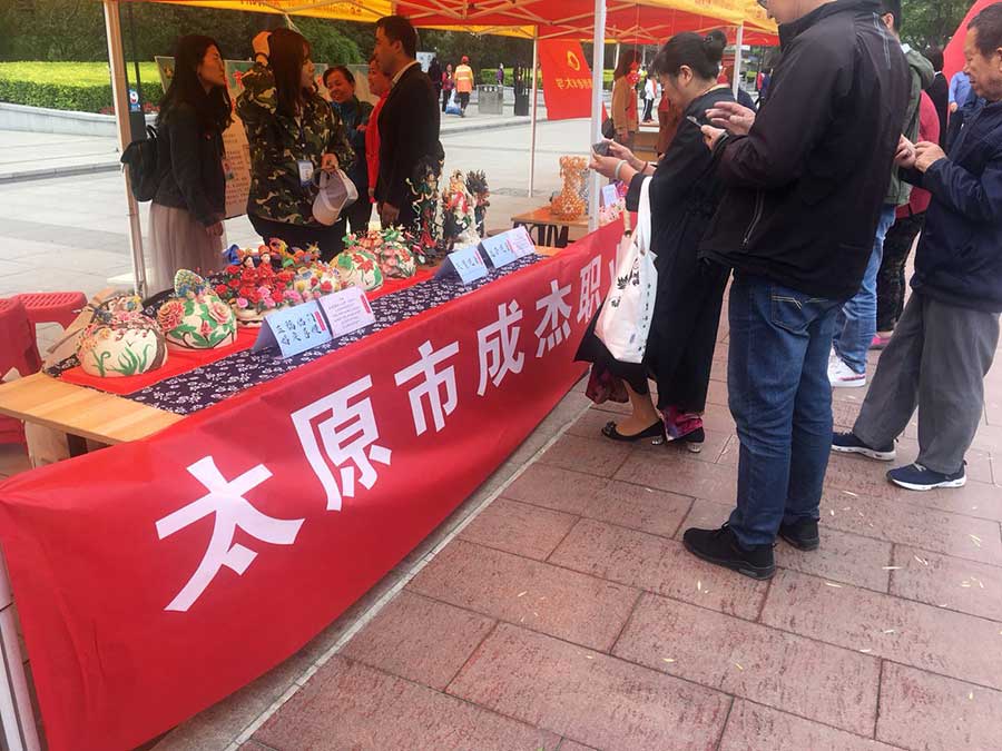 5月19日上午,太原成杰职校助力杏花岭区开展的以自强脱贫 助残共享为主题的第二十九届全国助残日活动! 太原成杰职校在本次活动中展出了我们学员制作的精美工艺品: 活动中精彩
