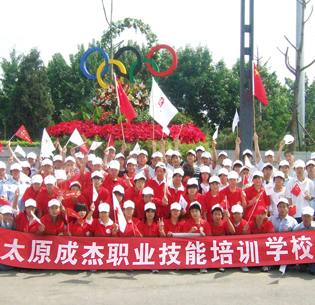 太原市成杰职校参加迎奥运火炬助跑合影留念